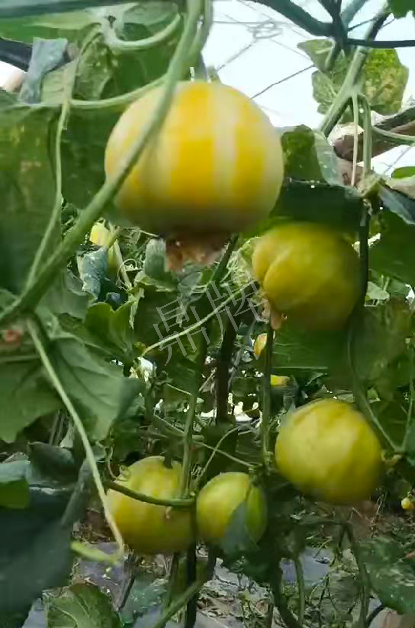 開始,我是通過網絡了解到“金帝”甜瓜這個品種的,圖片中的“金帝”甜瓜呈現流金色彩,坐果非常多。看留言區種植戶也反饋,“金帝”甜瓜品質好,甜脆多汁,售價高、很好賣。