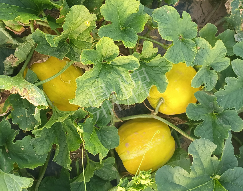 “丑八怪”甜瓜是一個較好的地方品種,以甜度高、抗性強而被大家熟知,但缺陷是果實齊整度差,大瓜可達5斤、小瓜只有半斤,這樣就嚴重影響了甜瓜的商品性。鼎牌公司以“丑八怪”為母本,以另外的品種為父本,組合了幾十個雜交品種,最后選出了二個有特色的雜交組合。一個是“金美2號”,其特點是抗枯萎病能力強,在連作地栽培不死棵,或很少死棵,果實大小均勻,甜度高,品質好。第二個是“秋甜1號”,其特點是抗高溫能力強于其它品種,特別適宜夏播秋收,果實大小均勻,甜度高,品質好。