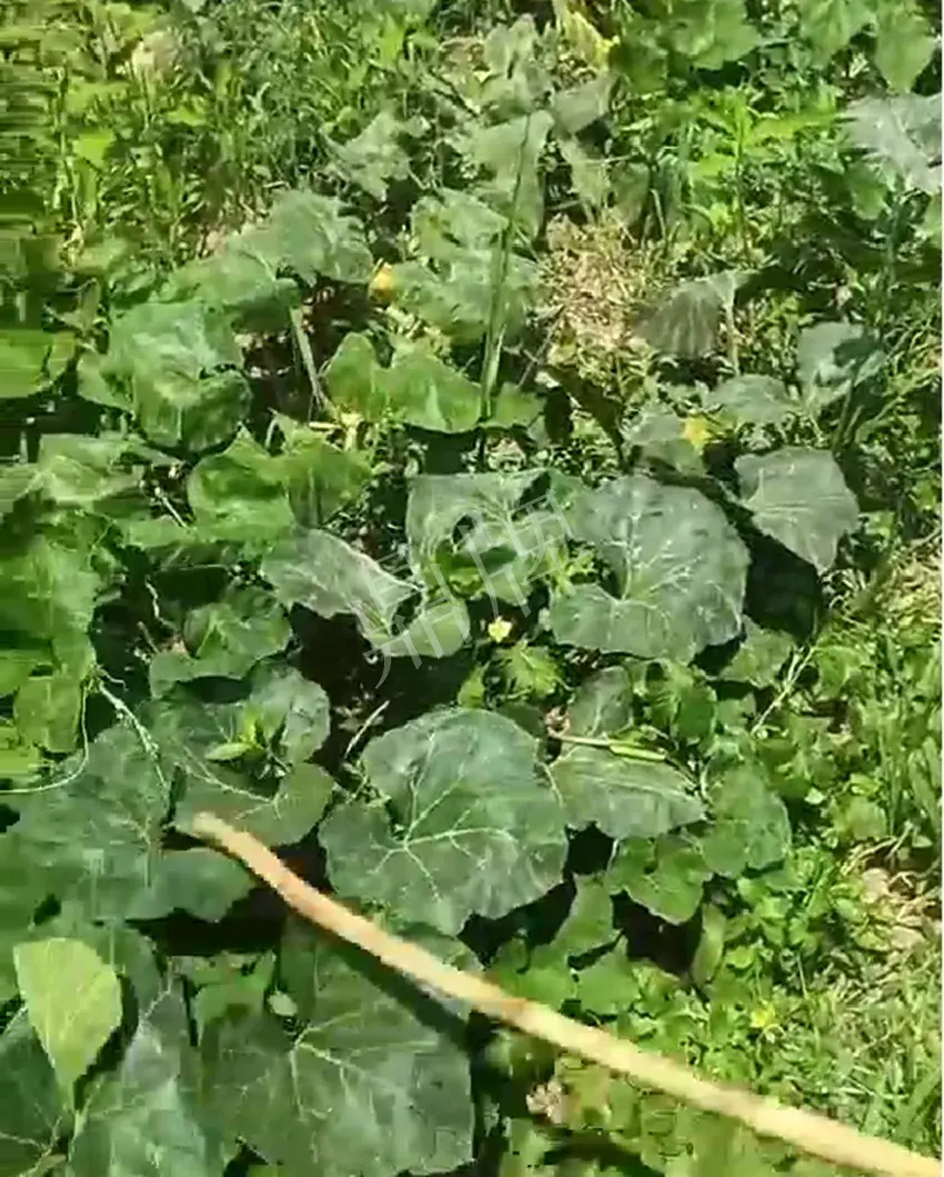 先給大家看一下在持續干旱高溫情況下,同時定植且相鄰種植的“小胖墩蜜本”南瓜和“某貝貝南瓜”的實拍情況。