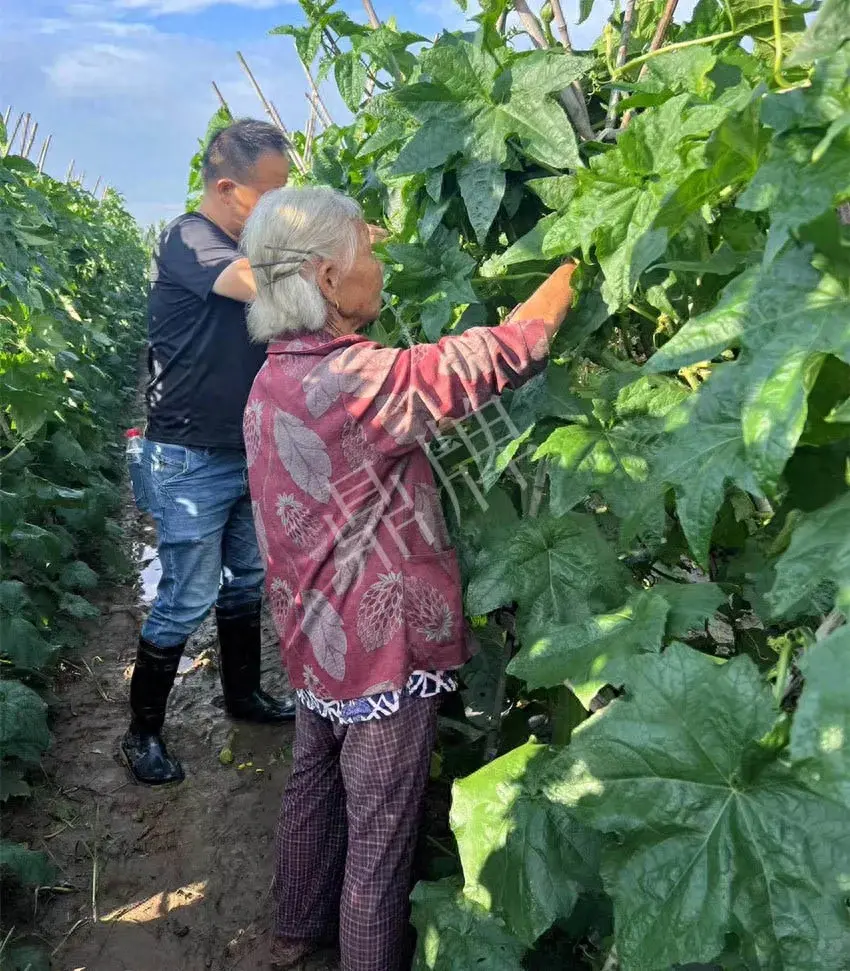 林奶奶這位60歲的滿兒子很能說,說的在行在理。在溝通快要結束時,他還不忘感謝鼎牌的種子。他說:我有比較滿意的收入,第一感謝的是鼎牌種子,因為種子好,我才能比別人的收入高。他特別提到三倍體絲瓜,在這種自然災害下,明顯比別人的好多了。