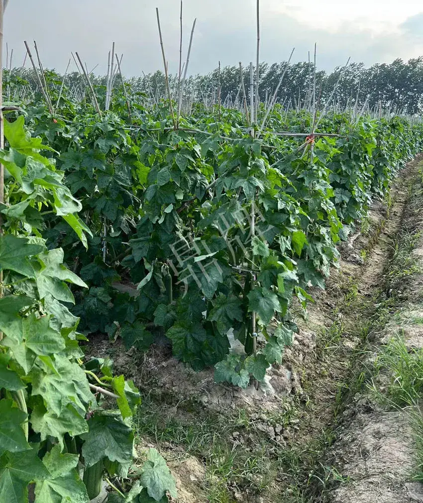這位滿兒子繼續說:我年年只種二個品種,雖然是換了幾個地塊種植,開始只有50畝左右,這幾年都在100畝以上。每年2月底或3月初開始播種鼎牌絲瓜;7月上旬開始播種鼎牌扁豆。這樣,扁豆是利用絲瓜原有的搭架,省工省成本。我們本地有不少早春扁豆栽培面積,也是鼎牌的扁豆品種,我是相反,下半年才播種,扁豆可以一直采收到霜降。絲瓜與扁豆的搭配,就變成了我一年的生產安排。