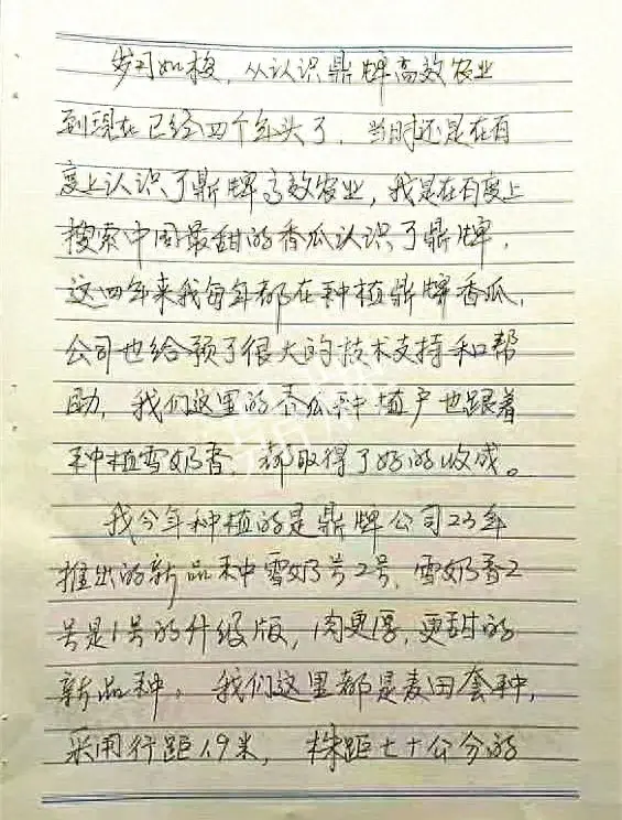 歲月如梭,從認識鼎牌高效農業到現在已經四個年頭了,當時還是在百度上認識了鼎牌高效農業,我是在百度上搜索中國最甜的香瓜認識了鼎牌。這四年來,我每年都在種植鼎牌香瓜,公司也給予了很大的技術支持和幫助。我們這里的香瓜種植戶也跟著種植雪奶香,都取得了好的收成。