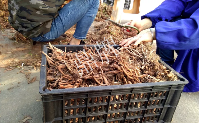 移栽的是種苗地下根莖,修剪后裝箱,