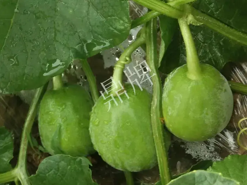 施用方法:當一批瓜有乒乓球大小時,結合澆水追肥,每畝施復合肥25公斤、硫酸鉀10公斤,這次的肥水供應很重要,與瓜的產量和品質成正比,特別說明的是,只要植株平均有4~5個乒乓球大小的瓜,此時加強肥水供應是不會出現“瘋長”的,因為瓜的膨大消耗了大量養分;雨天要注意排水,不能出現漬水情況。在果實膨大期,噴磷酸二氫鉀+殺菌劑+蕓苔素內酯,7天左右噴1次,連噴3~5次,能加速果實膨大,提高產量30%以上,并且,植株的抗病能力增強,瓜的顏色好,瓜的含糖量明顯提高。殺菌劑可以是多菌靈或百菌清等,按藥劑說明濃度使用。