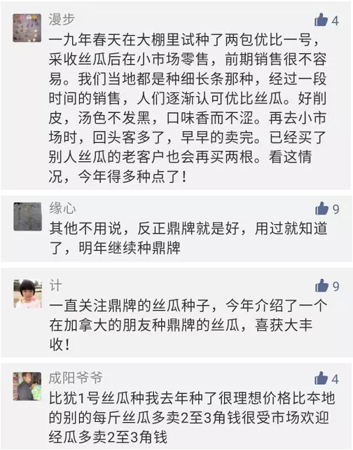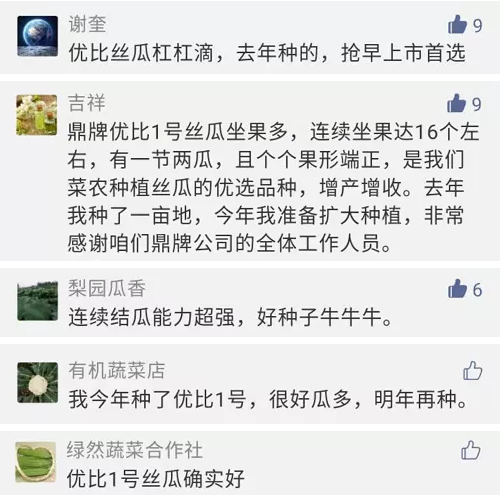 為了讓大家能夠更加深入的了解鼎牌,我們就以“優(yōu)比1號(hào)”絲瓜為例。看看大家種了之后都是怎么說的?