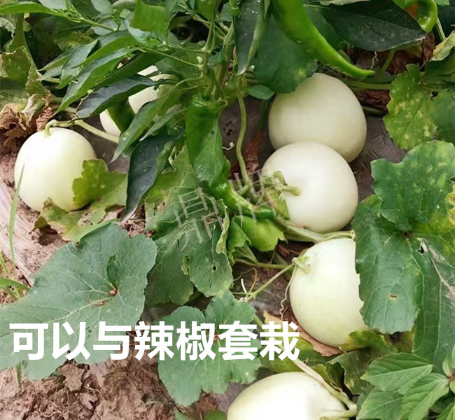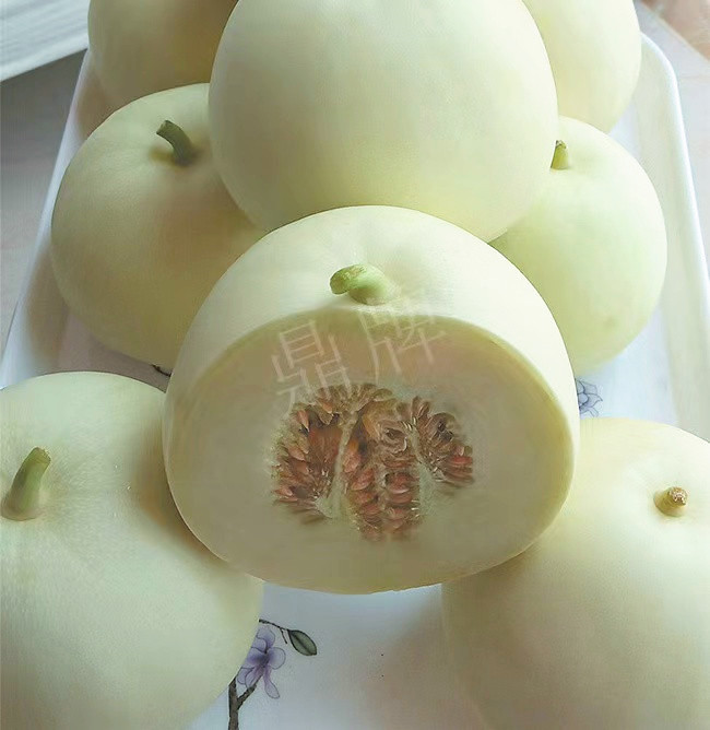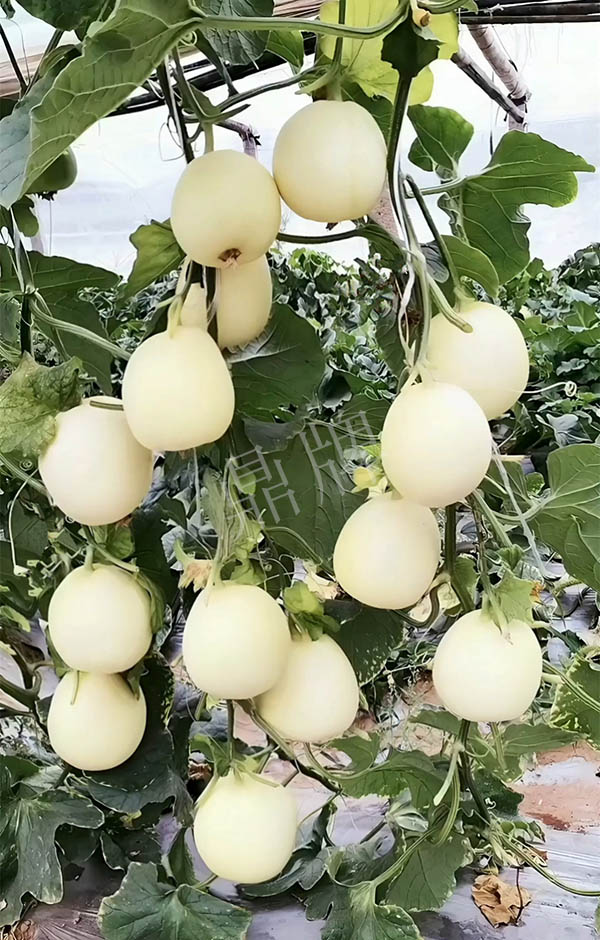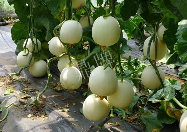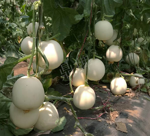 果實成熟后,果皮、果肉潤白,有一種天然質感,看到就讓人喜歡;果肉厚達3厘米,這是薄皮甜瓜中難以見到的品種;連皮吃時能聽到“咔嚓”之聲,脆爽無比;甜度高達19度;坐果早而多,單果重650克左右;多雨天氣不易裂瓜,棚室、露地都能獲得豐產。