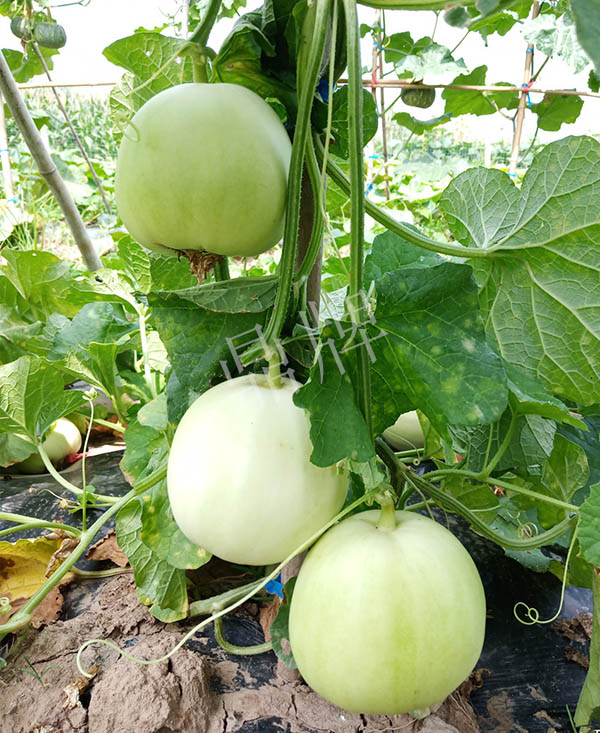抗高溫能力強,果皮、果肉乳白,果肉厚實、密致,皮脆肉酥,甜度高達19度;單果重600g左右。爬地1~2袋/畝、吊蔓5袋/畝。